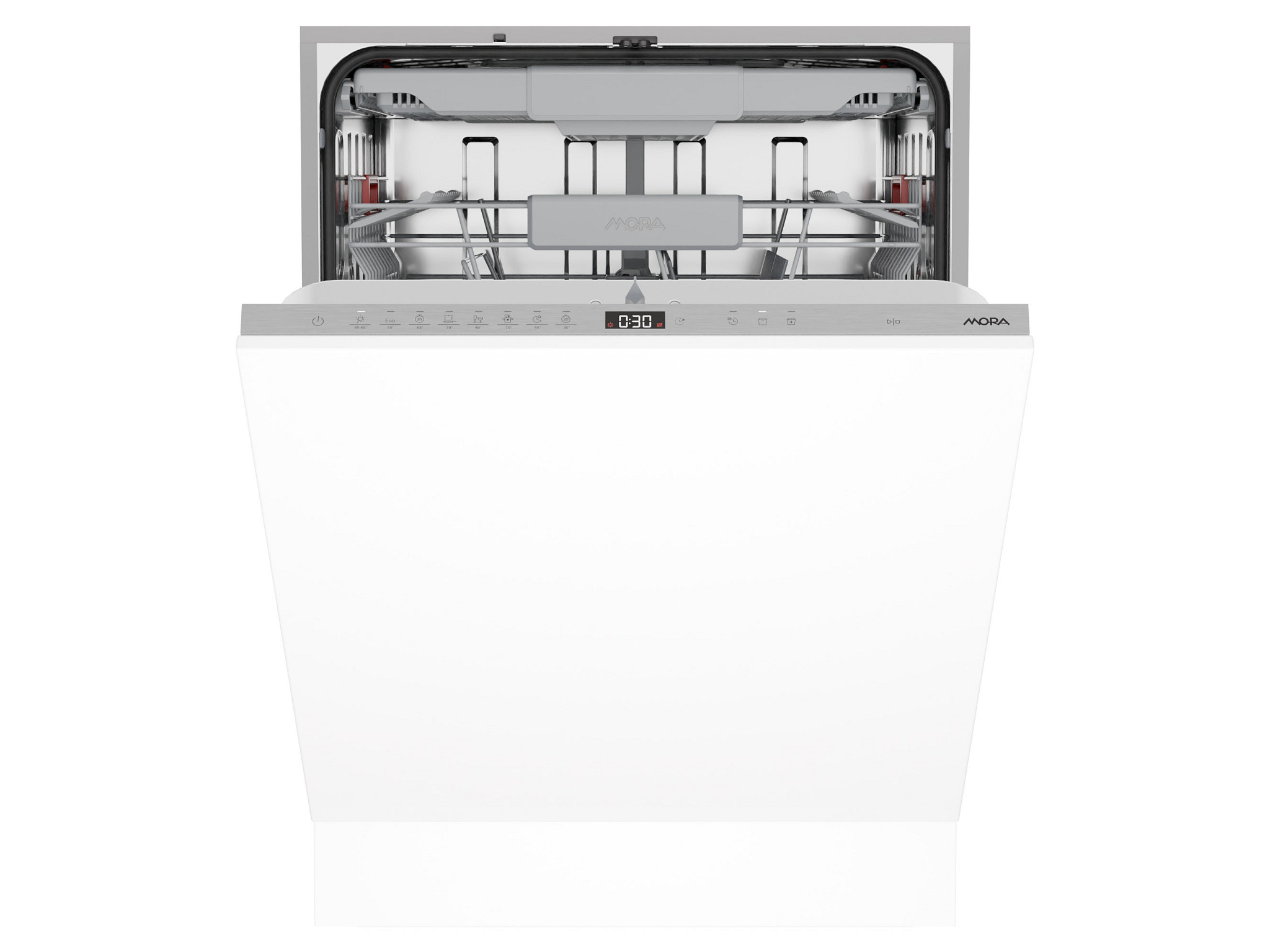 Vestavná plně integrovaná myčka MORA IMB 6676 v úsporné energetické třídě B si při standardní šířce 60 cm poradí s neuvěřitelnými 16 sadami nádobí. Nádobí dokonale umyje díky třem ostřikovacím ramenům a pěti výškovým úrovním proudu vody, takže bude bezvadně čisté, i když bude myčka opravdu plná a nádobí bude hustě naskládané. Je vybavená třemi koši s pohyblivými prvky a přizpůsobitelným nastavením. Horní koš slouží pro pečlivé a šetrné mytí příborů a kuchyňského náčiní, levý a pravý panel můžete posouvat podle toho, jak velký prostor v horním koši potřebujete. V horním a spodním koši najdete prostor i pro vyšší skleničky na víno. Skrytý ovládací panel je opatřen dotykovým ovládáním s displejem a mnoha praktickými funkcemi, jako je například RychléMytí, které umožňuje zkrátit délku vybraných programů. Zvolíte-li funkci SušeníPlus, po ukončení programu se automaticky pootevřou dvířka, aby tak unikla pára a následný sušicí cyklus byl efektivnější a energeticky úsporný. Energii pomáhá šetřit i možnost připojení přímo na teplou vodu pomocí speciální hadice, odolávající vysokým teplotám. Samozřejmostí je úsporný ECO Program nebo AUTO Program, který sám zvolí optimální parametry mytí. Praktický je i odložený start až o 24 hodin. Myčka má navíc praktický samočistící filtr, a tak automaticky odstraní zbytky mastnoty a jídla ve filtru a zamezí nesprávnému chodu spotřebiče. Se systémem AquaStop se nemusíte obávat nemilého překvapení v podobě vytopení. Myčka je osazená novým výkonným invertorovým motorem a je velmi tichá (42 dB). Dokonce se i sama vyčistí – stačí jednou za měsíc pustit automatický program čiťtění, který vyčistí vanu, ostřikovací ramena i trysky.